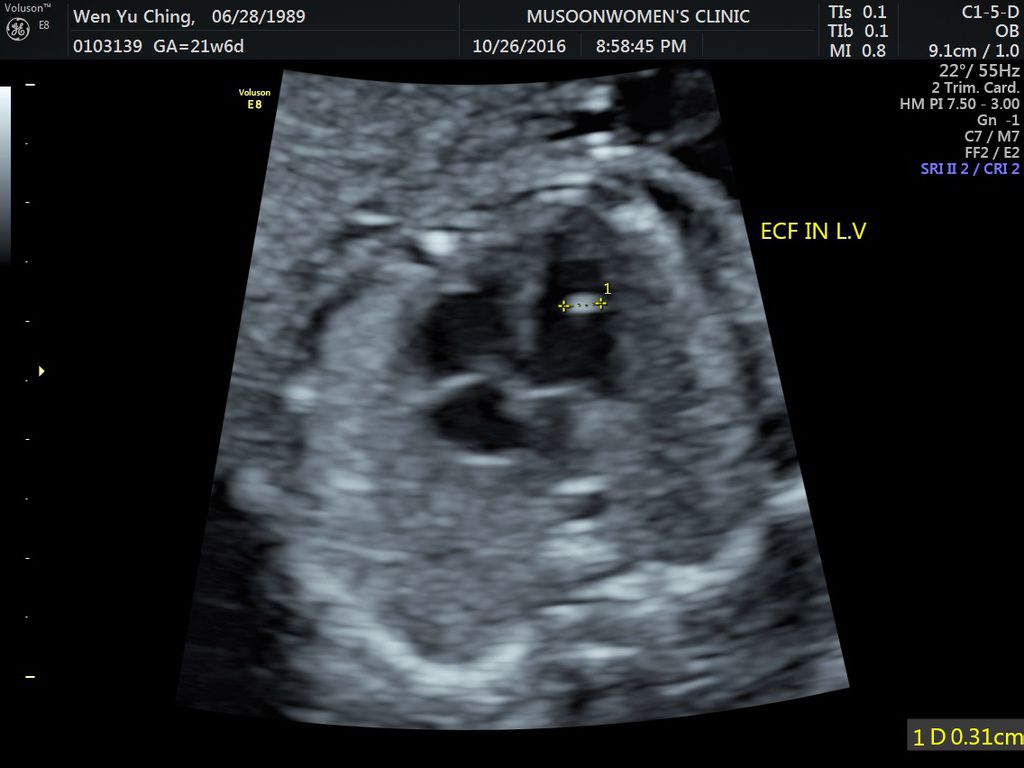 懷孕 (21-24W)高層次超音波: 左心室有一 顆小白點 嘖嘖