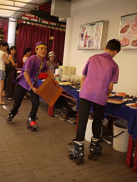 傳菜小弟都是穿著四輪溜冰鞋送菜