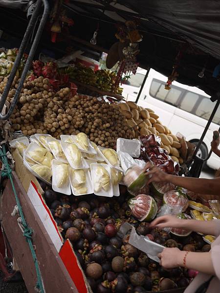 領隊秀秀 買了一包20泰銖的芒果青一直要我們嚐